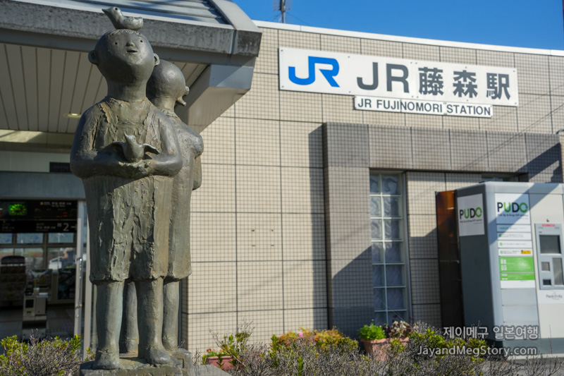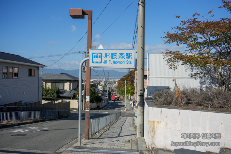 후지노모리 역을 나와서 오른쪽으로 갑니다. 역을 정면으로 봤을때는 왼쪽이며 위의 사진과 같이 JR 후지노모리역 표지판이 있는 곳의 길로 가도록 합니다.