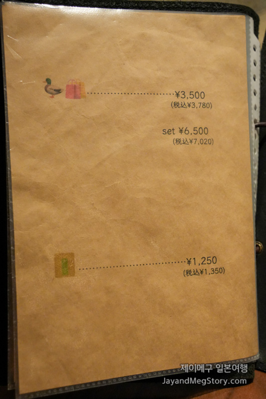 메뉴는 아무 정보 없이 가신다면 알아보기 힘든 편입니다. 우선 위의 사진에서 왼쪽편의 🦆🍜는 오리 라멘입니다. M과 L은 사이즈를 뜻하고, 🦆🍜😋는 특제 오리 라멘이라는 뜻입니다. 특제 오리 라멘은 오리고기가 5점 나오는데 허벅지 살인 모모와 등심인 로스 2종류가 있으며 원하는 비율로 선택하실 수 있습니다. 특제가 아닌 일반 오리 라멘이라면 모모나 로스 둘 중 하나만 선택 가능합니다.