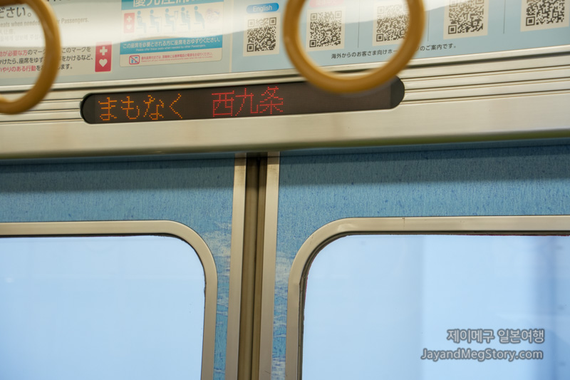 사쿠라가와(桜川), 돔마에(ドーム前), 구조(九条)역을 지나 니시쿠조(西九条)에 가도록 합니다. 소요시간은 8분입니다.