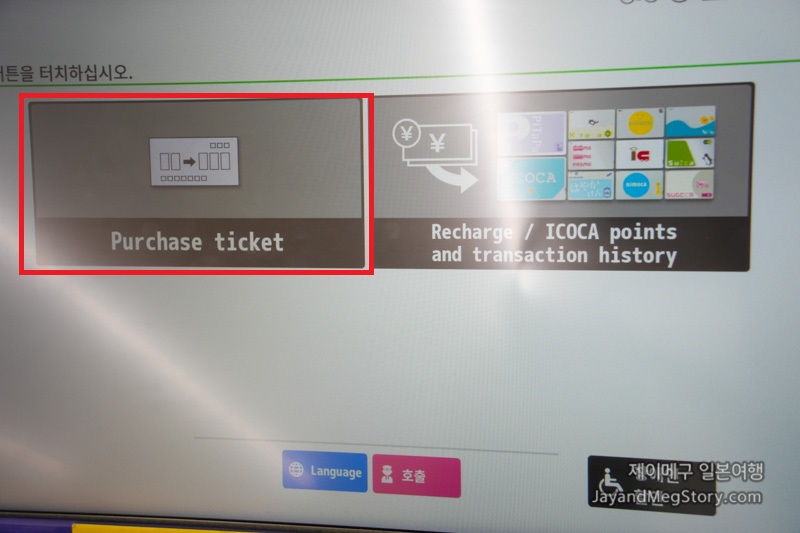 먼저 신형으로 승차권 구입하는 방법입니다. 화면 하단의 ‘Language’를 누르면 언어를 변경하실 수 있습니다.