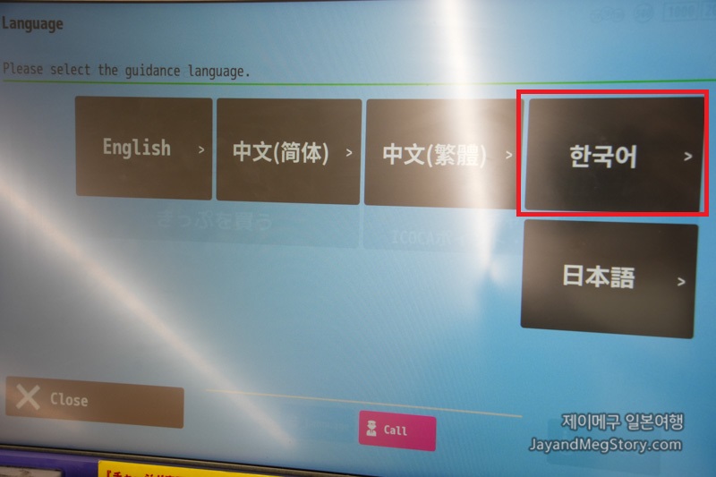 해외 관광객의 방문이 많아서인지 이 역은 기본 화면이 언어 선택이었습니다. 한국어를 선택해줍니다.
