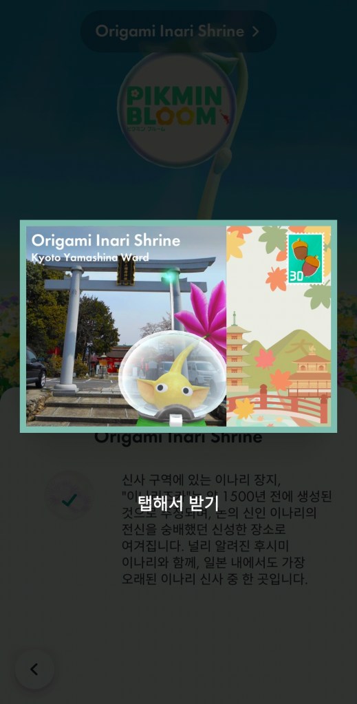 교토 오리가미 이나리 신사의 스페셜 엽서입니다. 세심하게 대열을 잘 확인하여 원하는 피크민이 엽서에 잘 반영되었습니다.