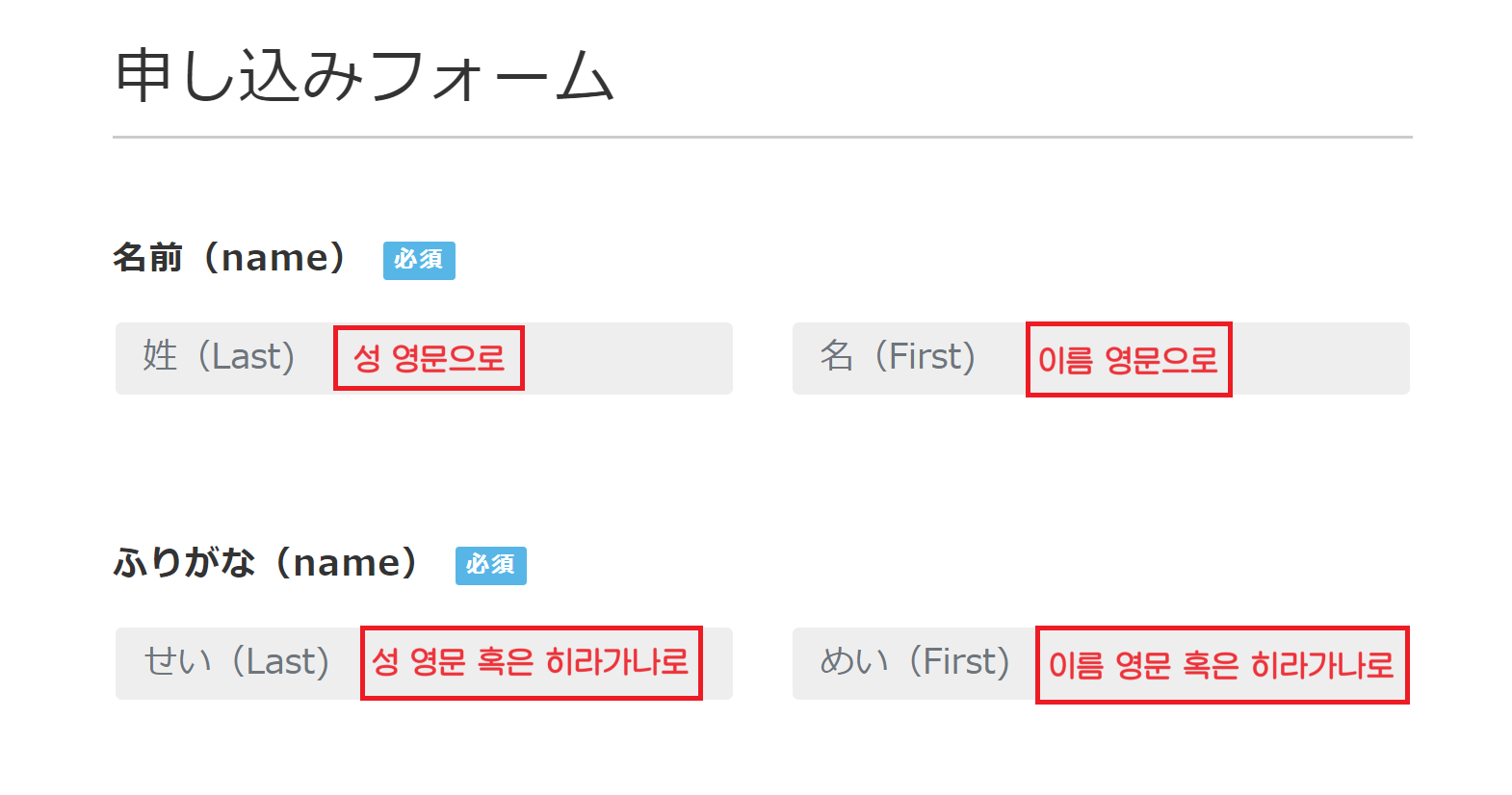 관람일자를 선택하셨다면 아래에 이름을 영문으로 적어줍니다. 이메일 등록시 이름을 적었기에 윗 칸의 이름은 이미 적혀 있을겁니다. 적혀있지 않다면 이름을 적은 후 아래에 후리가나라고 일본어 히라가나로 적혀있는데, 한글이름을 히라가나로 변환시켜서 적는것을 추천드리지만, 영어로 다시한번 적으셔도 무방합니다.