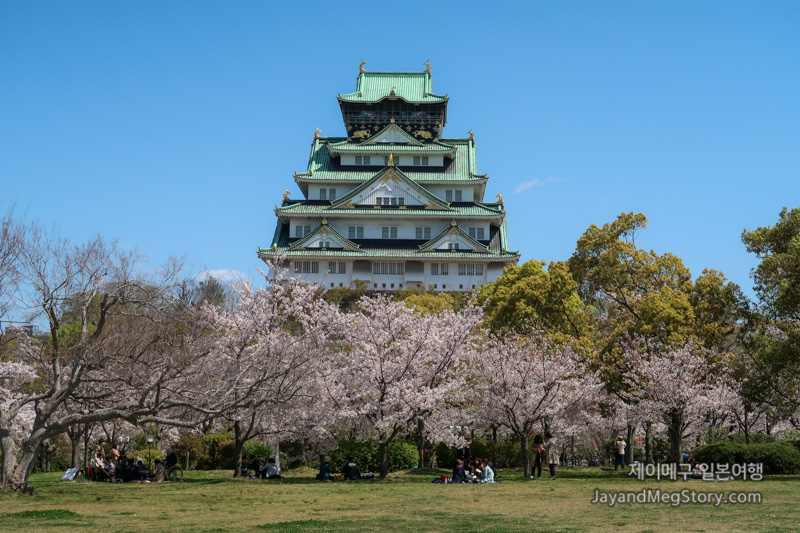 오사카하면 제일 먼저 떠오른다고 생각되는 오사카성 공원(大阪城公園)입니다. 오사카의 상징인 웅장한 성과 그 주변으로 약 3천그루 정도의 벚꽃이 어우러진 최고의 명소입니다. 날씨가 좋은 낮에는 푸른 하늘과 벚꽃, 성이 어우러진 멋진 풍경을 보실 수 있으며, 밤에는 조명이 더해져 환상적인 분위기를 연출하기도 합니다.