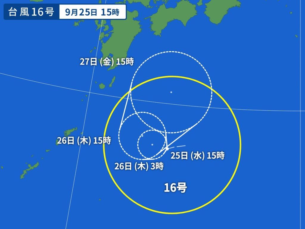 태풍 16호 시마론은 9월 25일 오후 12시에 일본의 남쪽 해상에서 발생하였습니다.