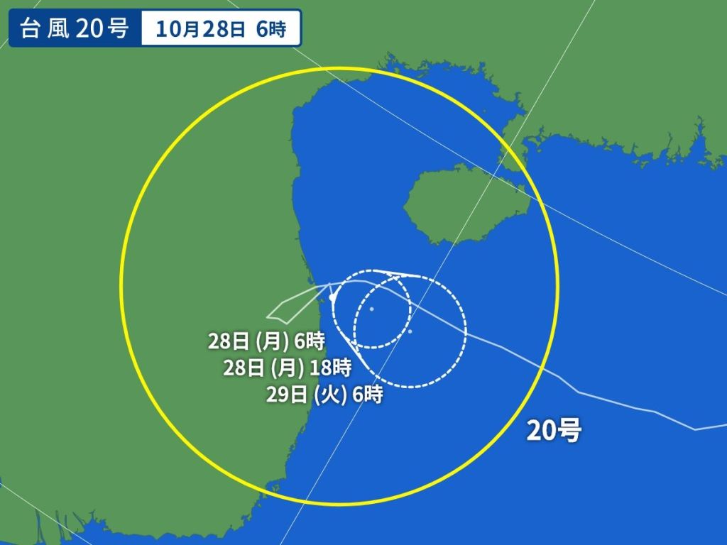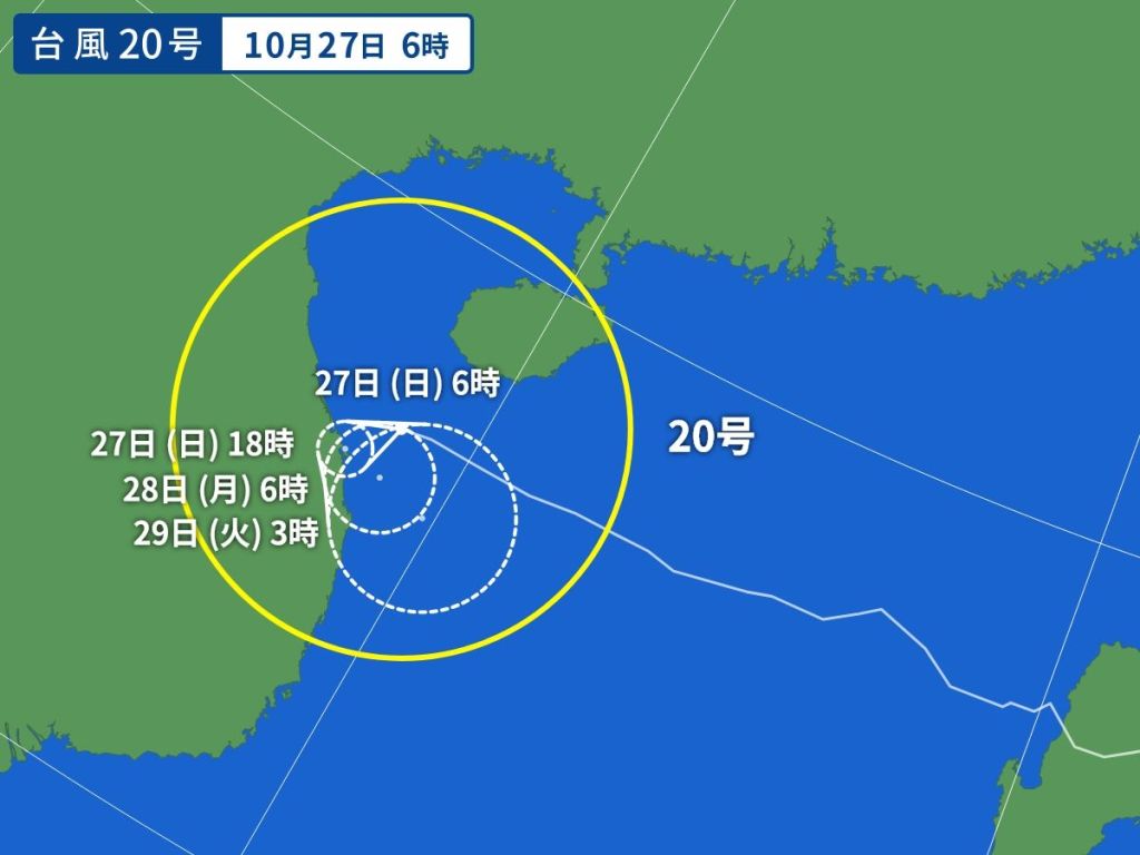 일본 기상청에서 10월 28일 오전 9시 50분에 발표한 내용에 의하면 태풍 20호 짜미는 열대저기압으로 변경되었습니다. 이후 태풍 짜미 예상 경로 업데이트는 없습니다.