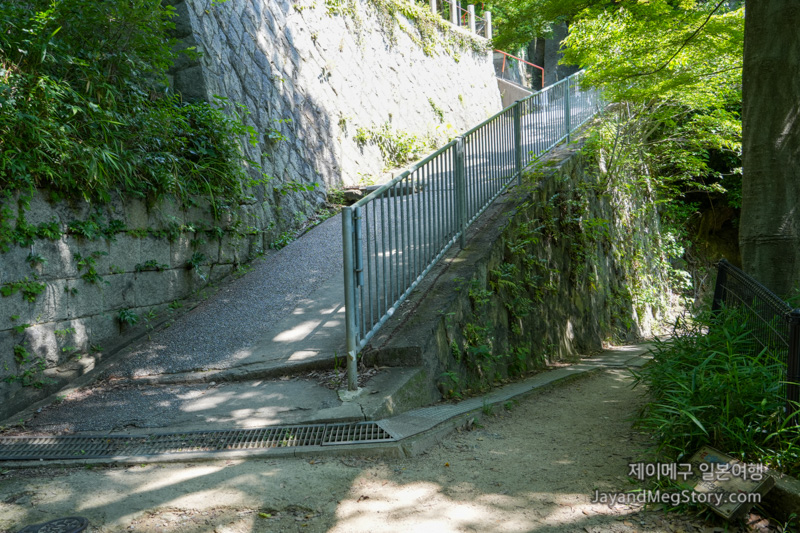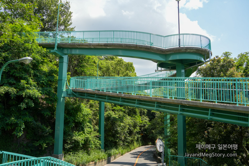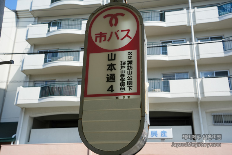 이곳에서 3 정거장 후인 야마모토도리욘초메(山本通4)에서 하차하도록 합니다. 고베 공식 관광사이트에서는 스와야마코엔시타(諏訪山公園下) 정류장에서 내리는 걸 권장했으나, 구글 지도에서는 야마모토도리욘초메가 우선적으로 나왔고, 실제로 가보고 나니 야마모토도리욘초메는 언덕길을, 스와야마코엔시타는 계단길을 이용하는 차이라고 생각하시면 될 것 같습니다.