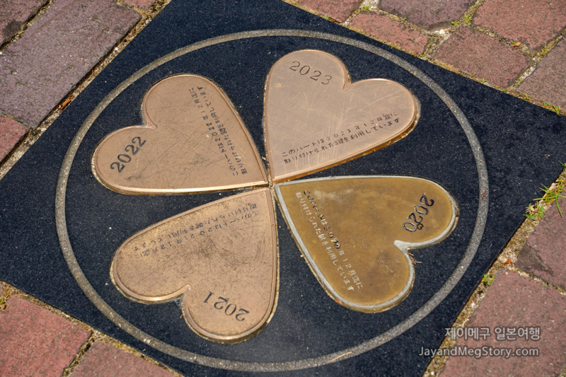 자세히 보면 각 연도의 하트로 되어있고, 제일 최신인 2023년 하트가 보입니다. 그리고 각 하트의 한 쪽에는 이 하트는 해당 년의 12월에 사용된 자물쇠를 이용했다고 적혀있습니다.