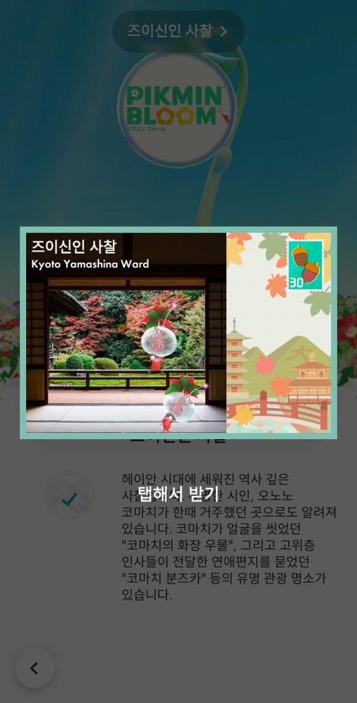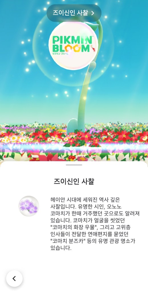 참고로 피크민 블룸 교토의 숨은 보석 이벤트 한글 페이지에서는 즈이지인 사찰로 적혀있지만 즈이신인 사찰이 맞습니다. 보상으로 받는 엽서에도 즈이신인 사찰이라고 적혀있습니다. 이벤트 페이지에 적혀있는 이름은 즈이지인이기에 이 글에서는 즈이지인으로 작성하도록 하겠습니다.