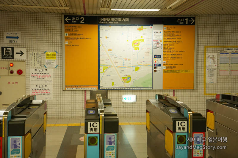교토 즈이지인 사찰로 바로 가기 위해서는 JR 교토 역의 다음 역인 야마시나 역으로 가도록 합니다. 야마시나 역에서 버스를 통해 가는 방법이 있고, 지하철로 갈아 타는 방법이 있는데, 저는 지하철을 이용하여 오노 역(小野)으로 갔습니다.