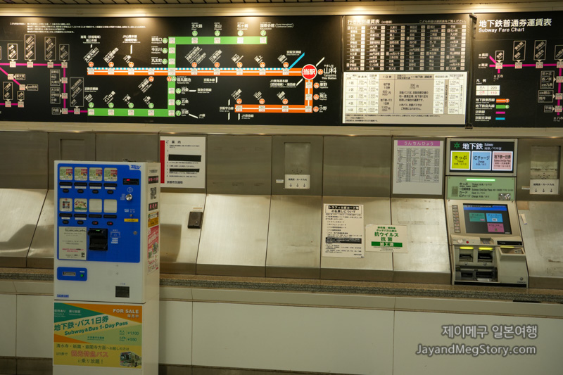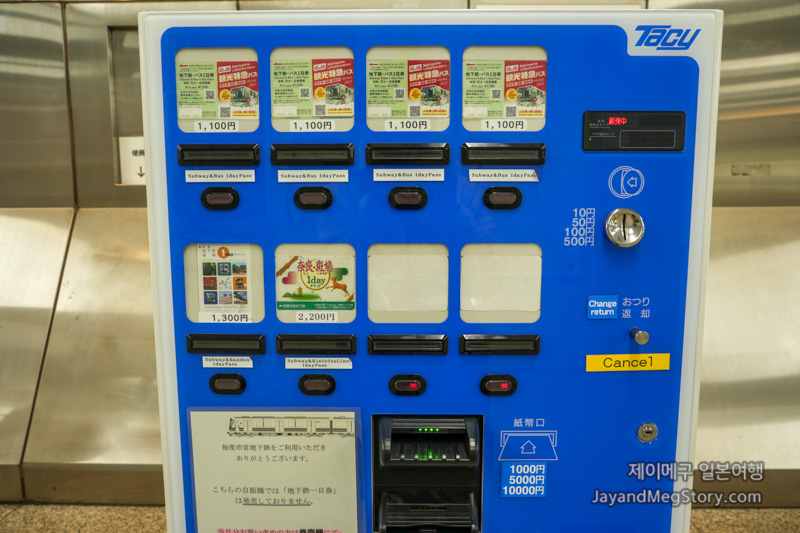 교토 지하철과 시 버스를 해당일에 1100엔 이상 타실 것 같다면 맨 윗줄의 1일권을 구매하시는 것도 추천합니다. JR, 한큐, 게이한 전철이 아닌 교토 지하철임을 잘 확인하시기 바랍니다.