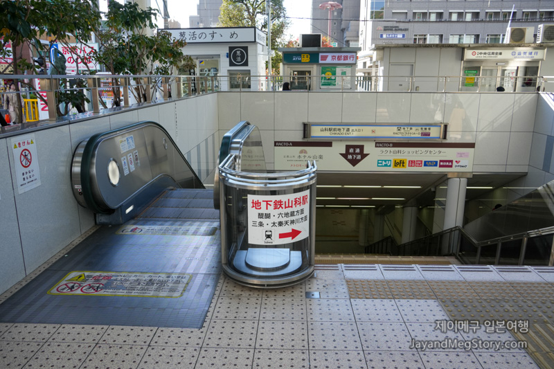 야마시나 역에서 나오면 바로 지하철 역으로 갈 수 있는 계단과 에스컬레이터가 보입니다. 내려가도록 합니다.